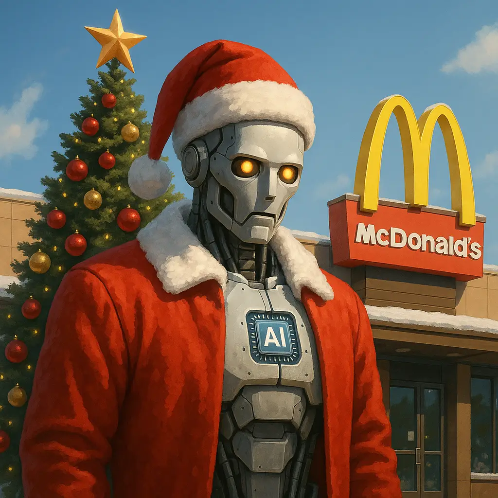 麥當勞近期推出一支 AI 生成聖誕廣告,原意是諷刺節慶壓力,但因畫面冷漠、節奏突兀、缺乏人味,被觀眾批評「不像人做的」。面對巨大負評,官方迅速將影片從 YouTube 下架。許多觀眾質疑:企業既然如此注重廣告形象,為何不請真正的藝術家創作?