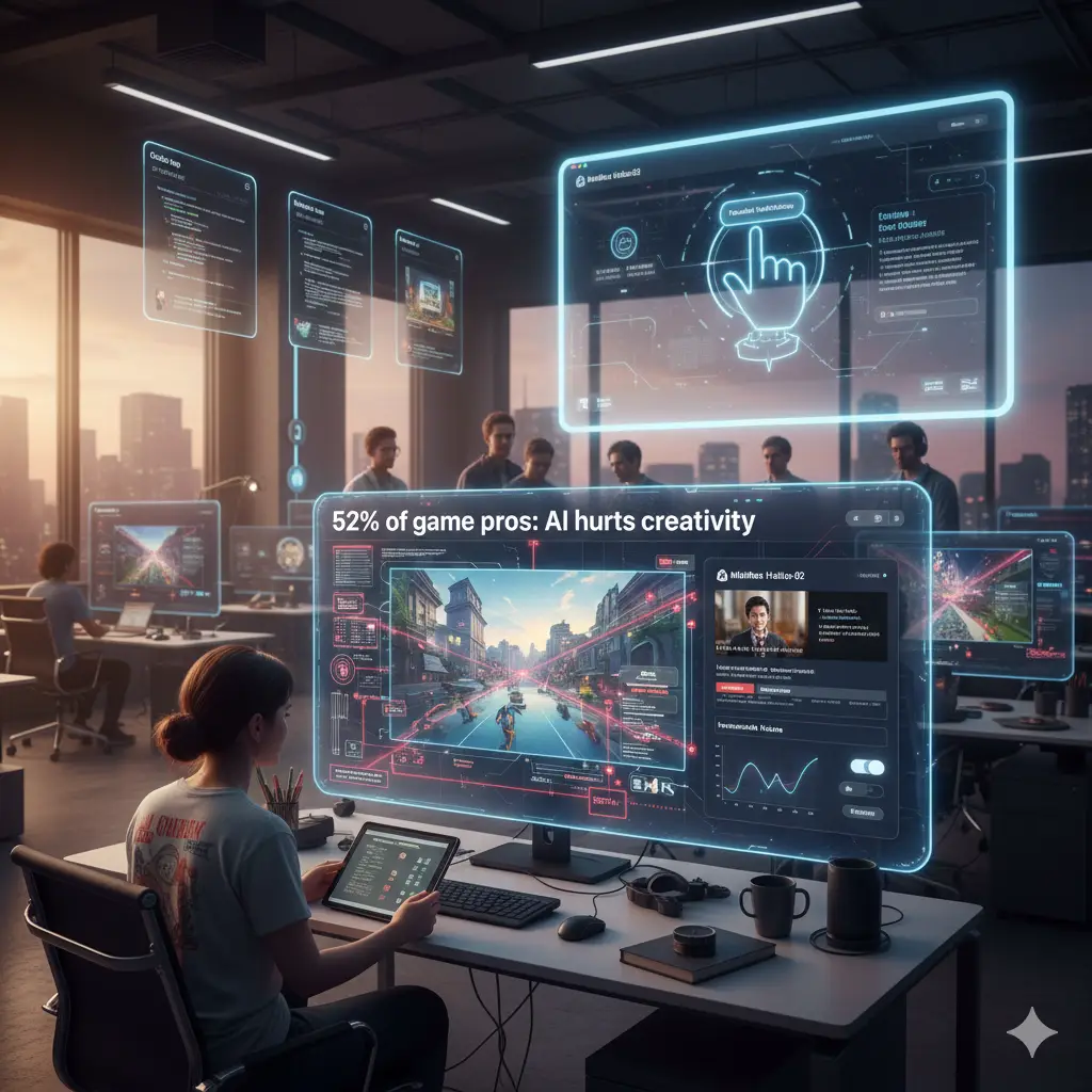 根據 GDC(遊戲開發者大會)最新報告,52% 的從業者認為 AI 對產業有負面影響,較去年激增 22%。這種恐懼並非來自對技術的陌生,而是來自「正在使用中」的幻滅。許多開發者發現,使用 AI 生成素材後需要花費更多時間進行修正,這讓他們感覺自己更像是「AI 數據標註員」,而非創作者。