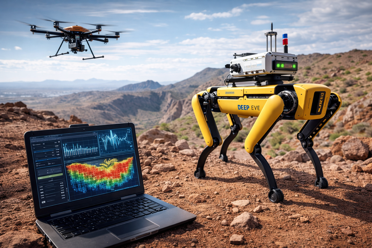 • 深瞳勘探系統: 這是一套「地表掃描儀」。利用機器狗背著精密感測器,像照超音波一樣掃描地底,AI 負責把複雜的雜訊過濾掉,畫出地底礦脈的 3D 地圖。